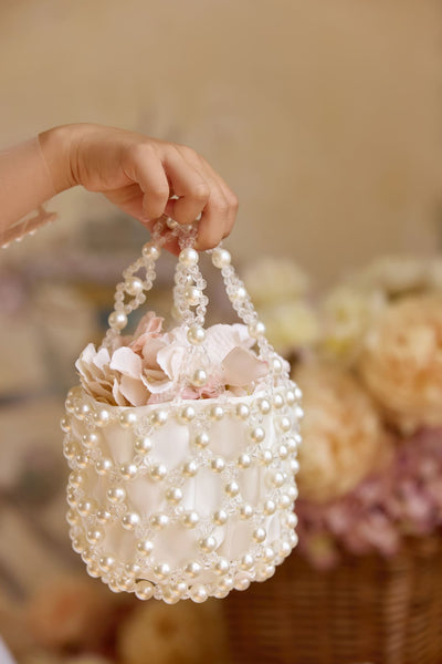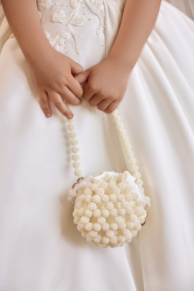Flower Girl Dresses: Blush Princess Dress for girls with pearls - Mia Bambina Boutique