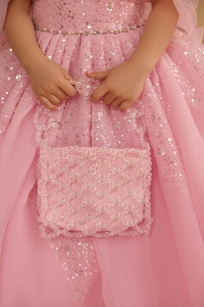 Blush Junior Bridesmaids Gown with Floral Embroidery